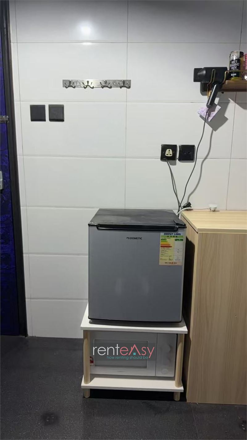 Room has no window, but includes air conditioning, water heater, refrigerator, microwave, and wardrobe. Direct rental from owner, no commission